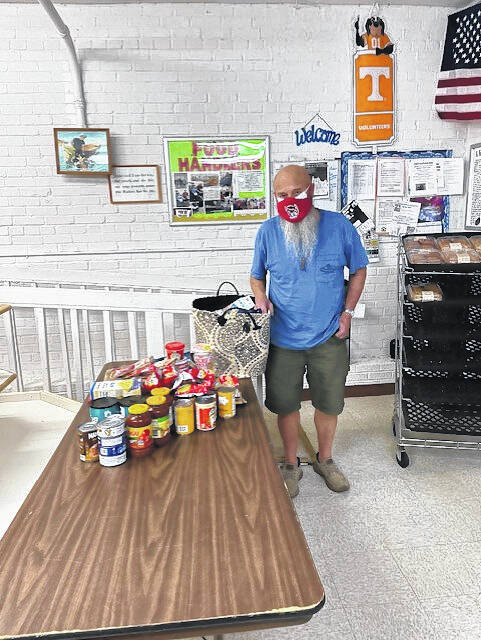 Joe Thomas Jr. represented the Fountain Hill UM Church members. The food items were recently collected and donated to Burnsville R&L Center Emergency Pantry. (Submitted).