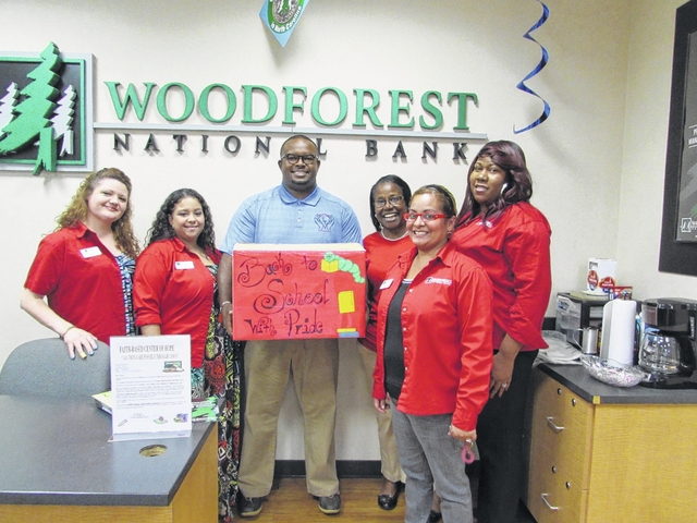 Sturdivant’s “Stuff the Bus” event also drew attention from Woodforest Bank, which is located inside the Wadesboro Walmart. Sturdivant said she came by the bank a few weeks ago and asked the staff to let her know if they knew of any kids who needed the school supplies. Not only did the staff provide names of children, they held their own school supply drive and donated a large box to Sturdivant on Friday.